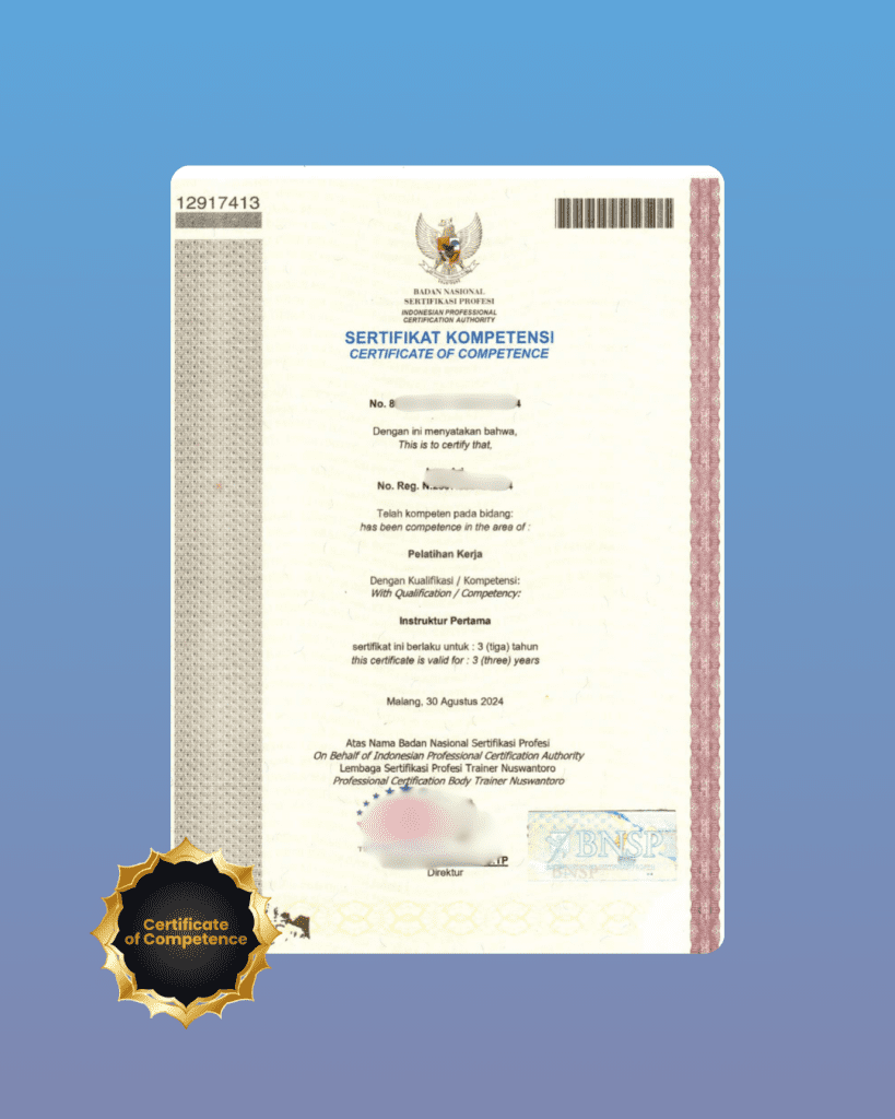 Harga di atas sudah termasuk pelatihan, asesmen, dan pengurusan sertifikat resmi BNSP. Dibandingkan dengan rata-rata harga pasar yang bisa mencapai lebih dari Rp5 juta untuk level ahli, penawaran ini sangat kompetitif dan menghemat biaya tanpa mengurangi kualitas.